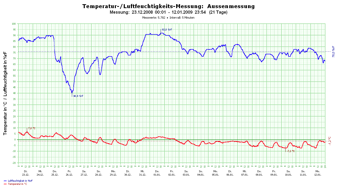 - Das Diagramm ist zwischen °C und °F umschaltbar.